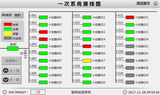 實時監測各個回路能耗及報警狀態,便于客戶運營及分析。本地采用7寸人機界面,交互操作方便,提供以太網接口與上級監控系統連接。。